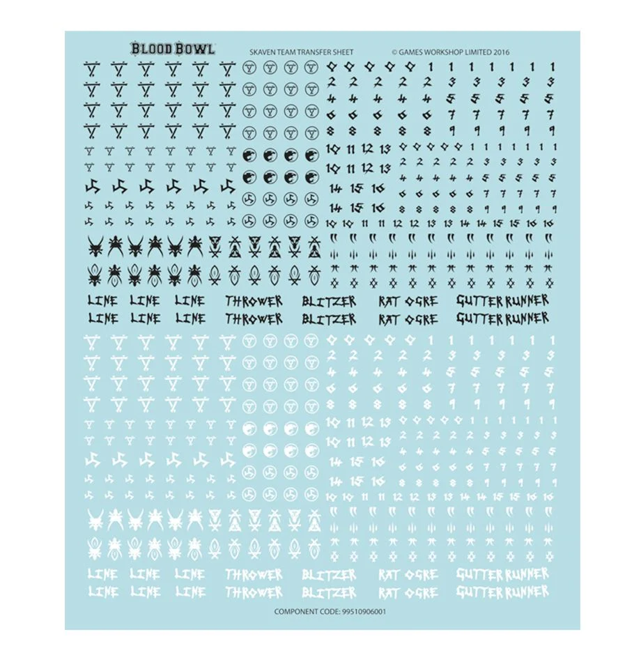 Troverai 2 Blitzers, 2 Throwers, 2 Gutter Runners e 6 Linemen, oltre a una scheda. Forniti con un foglio di trasferibili, segnalini di turno, palle extra e 12 basette Citadel rotonde da 32mm con fori per la palla.
