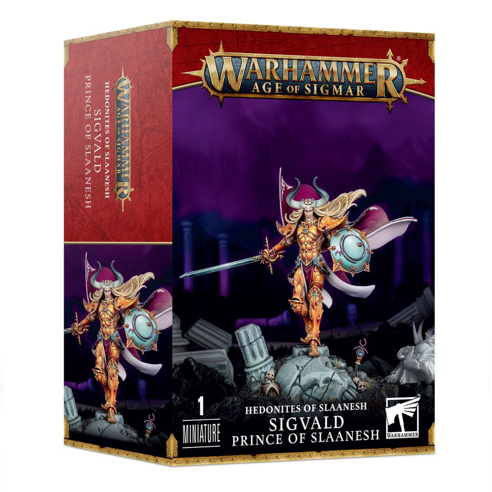 Sigvald il Magnifico si è autoproclamato figlio prediletto di Slaanesh e pochi osano contraddirlo. In battaglia, il Principe Dorato combatte con una velocità sconvolgente, ridendo crudelmente mentre la sua spada elegante fa a pezzi marmaglia e campioni indistintamente.