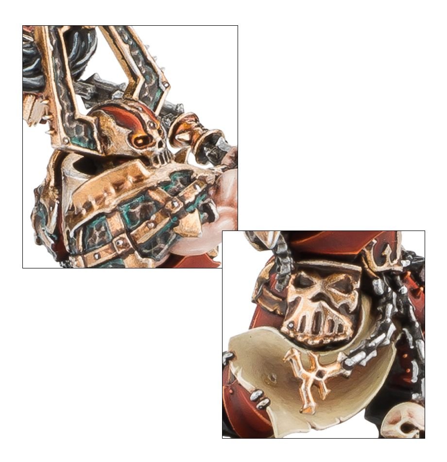 Questo kit multicomponente di plastica contiene tutto ciò che ti occorre per assemblare un brutale Skullgrinder armato con una pesante incudine di bronzo. La miniatura ha una singola posa e sfoggia un ornato elmo di Khorne, una veste da fabbro e un martello attaccato alla cintura, oltre a numerosi simboli e marchi del Dio del Sangue. Il kit comprende nove componenti in totale e una basetta rotonda Citadel da 40mm.