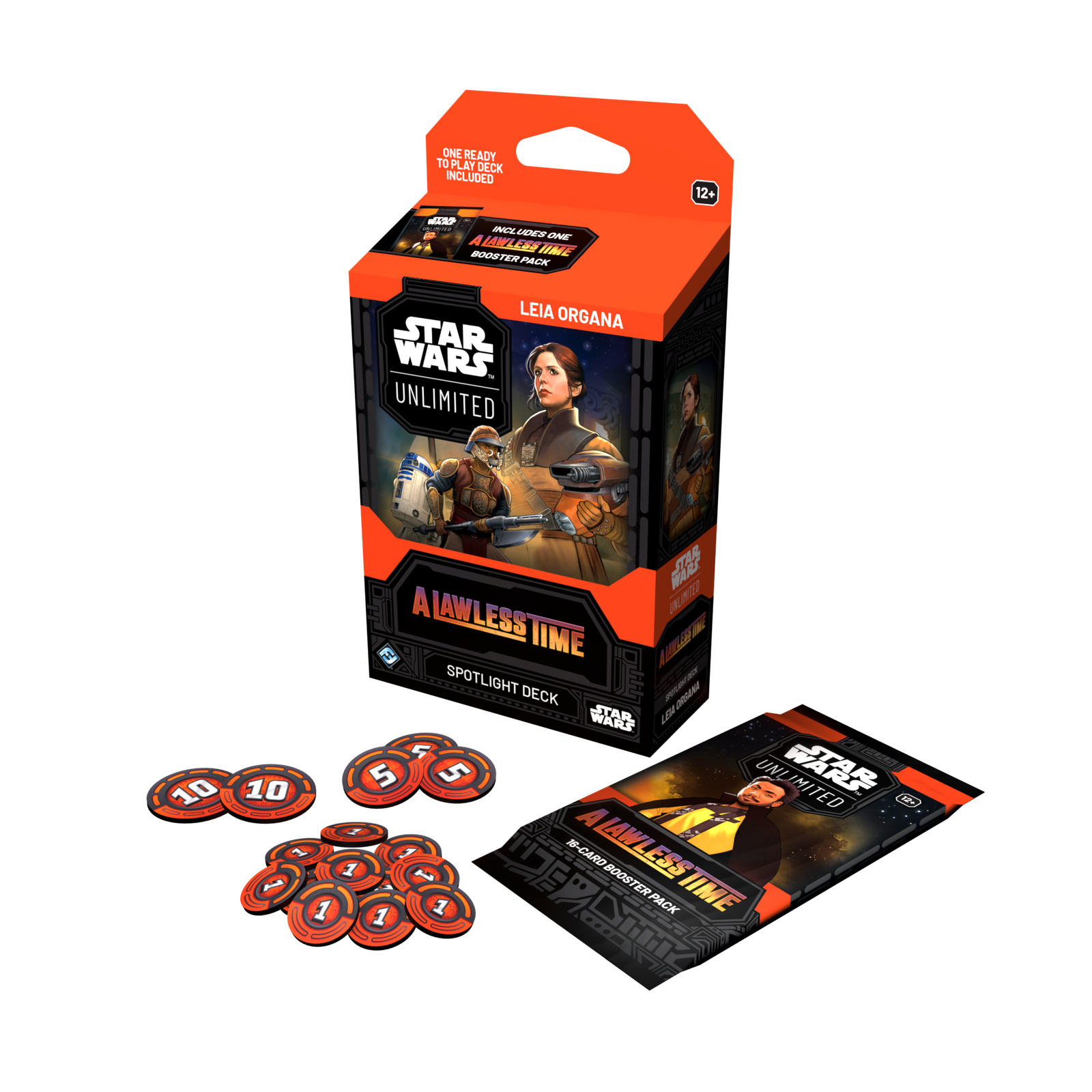 Questa confezione contiene 1 carta leader Leia Organa e un mazzo precostruito di 50 carte pronto per giocare incentrato sui suoi punti di forza. Il mazzo include carte provenienti da diversi set insieme ai playset di 4 carte speciali esclusive, oltre a vari gettoni danno, segnalini e un booster pack di Tempi Senza Legge per incrementare la tua collezione!